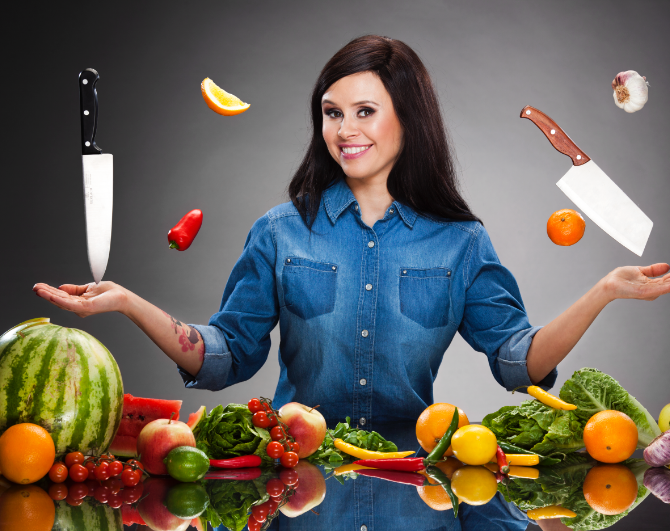 Przykładem korzystnego zestawienia są pomidory i brokuły – pierwsze z nich zawierają likopen neutralizujący działanie wolnych rodników, natomiast drugie wspomagają usuwanie tych składników z organizmu. Funkcję opóźnienia procesu starzenia wspomoże także duet jabłko i żurawina. Konsumowane razem będą działać jako antyoksydanty jeszcze skuteczniej. Jeśli pojawia się problem z niedoborem żelaza, do świeżego szpinaku należy dodać odrobinę cytryny – witamina C obecna w owocu ułatwi przyswajanie żelaza. Z tego samego powodu produkty mięsne warto jeść z surówką z kapusty, papryką, czy natką pietruszki. Do takiego posiłku polecany będzie także sok z czarnej porzeczki lub np. z pomarańczy. Warzywa powinno się spożywać w towarzystwie dobrych tłuszczów. Jeśli do pomidorów doda się awokado, znacznie łatwiej przyswajana będzie zawarta w pierwszym z nich witamina A (w postaci beta-karotenu). Podobnie będzie działało zestawienie oleju rzepakowego, czy oliwy z warzywami. W ten sposób zwiększa się przyswajalność wszystkich witamin rozpuszczalnych w tłuszczach. Ponadto większość warzyw i owoców ma działanie zasadotwórcze, czyli odkwaszające organizm, dlatego warto łączyć je z produktami o działaniu kwasotwórczym jak mięso, czy produkty zbożowe, neutralizując wpływ posiłku na równowagę organizmu.
